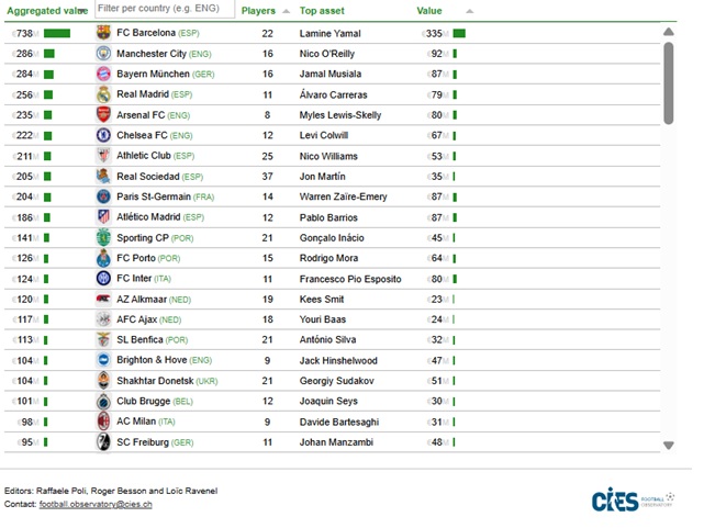 Η Μπαρτσελόνα στην κορυφή της παγκόσμιας κατάταξης Ακαδημιών (αξία στα 738 εκατομμύρια)