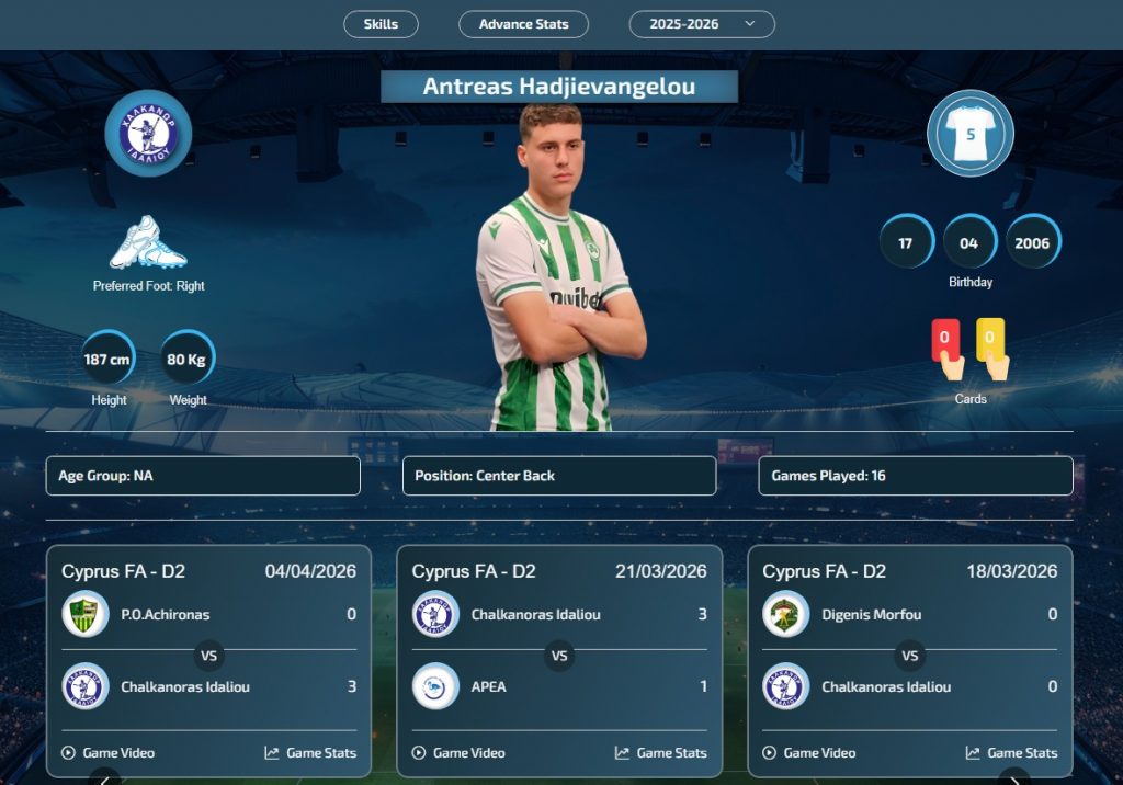 Με ένα μόνο κλικ, το προφίλ κάθε ποδοσφαιριστή μπορεί να κοινοποιηθεί σε agents, scouts, προπονητές και ομάδες, ανοίγοντας δρόμους σε απεριόριστες ευκαιρίες, ακόμη και εκτός Κύπρου.