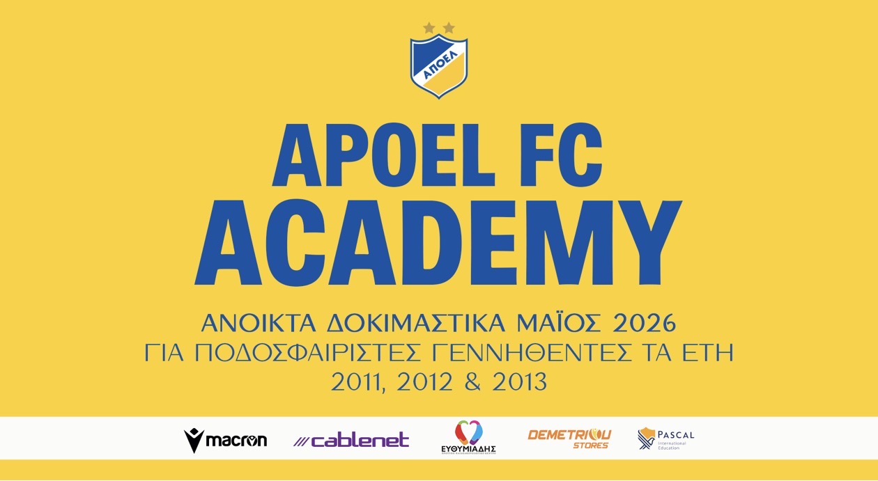 Η Ακαδημία Ποδοσφαίρου ΑΠΟΕΛ δέχεται αιτήσεις για την πλήρωση θέσεων: Προπονητών/τριών για τα τμήματα...